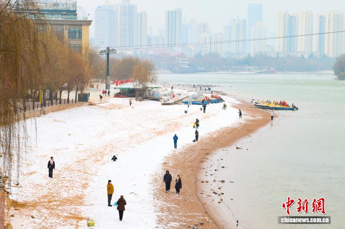 甘肃兰州迎新年初雪 黄河岸畔景致如画